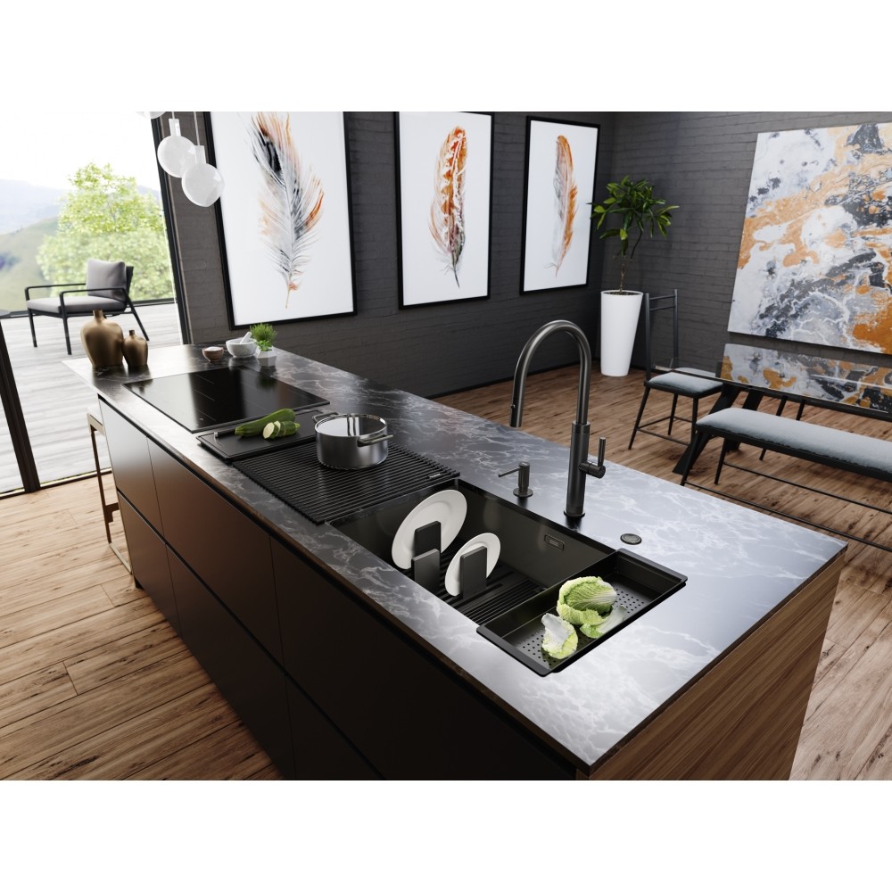 Realizate cu un design funcțional, stil elegant și o atenție maximă la detalii, noile baterii Mythos Masterpiece sunt completarea perfectă pentru bucătăria ta Franke. Sunt disponibile în trei culori metalice diferite, anthracite, gold și cooper, fiecare potrivindu-se perfect cu celelalte elemente ale colecției Mythos Masterpiece, pentru armonie vizuală perfectă în bucătăria ta. Fiecare baterie Mythos Masterpiece nu numai că este plăcut estetic, ci și incredibil de funcțională: duza dublă cu jet laminar oferă spălare puternică și eficientă chiar și pentru cele mai persistente murdării, iar dușul extensibil ajunge oriunde în cuvele Mythos Masterpiece BXM, pentru comoditate maximă.
