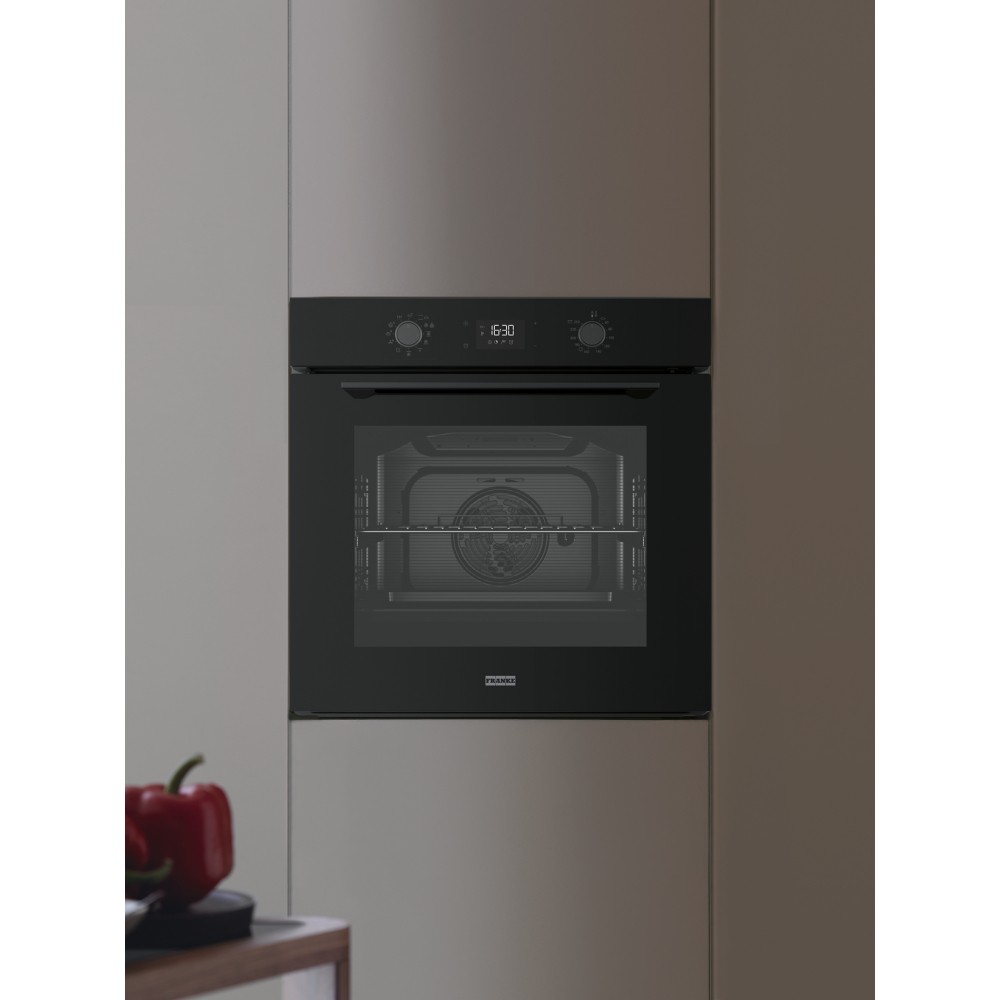 Cuptor multifuncțional curatare cu piroliza. Funcție specială: Pâine & Patiserie pentru rezultate de gătit excelente. Funcție Air Fry: permite obținerea de rezultate crocante și rumene folosind aer fierbinte în loc de ulei, reproducând într-un mod mai sănătos efectul prăjirii tradiționale - cea mai recenta tehnologie din gama Franke.
