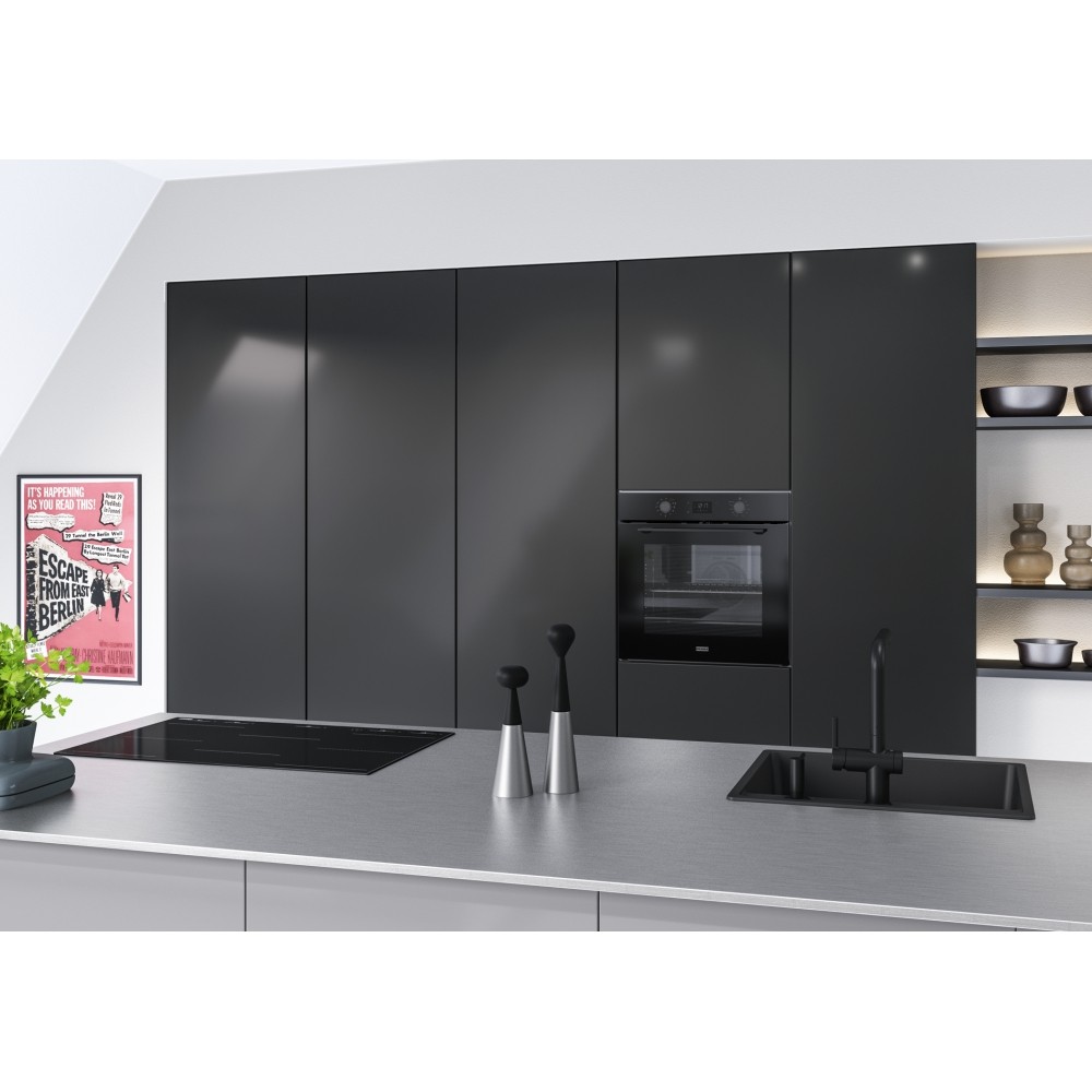 | Detalii | Tip Multifunctional Pirolitic Volum 71 litri Programare Display LED si butoane push/pull Geam interior usor demontabil Ghidaje cromate cu sine telescopice pe 1 nivel Usa: Inchidere si deschidere amortizata Butoane si manere negre |