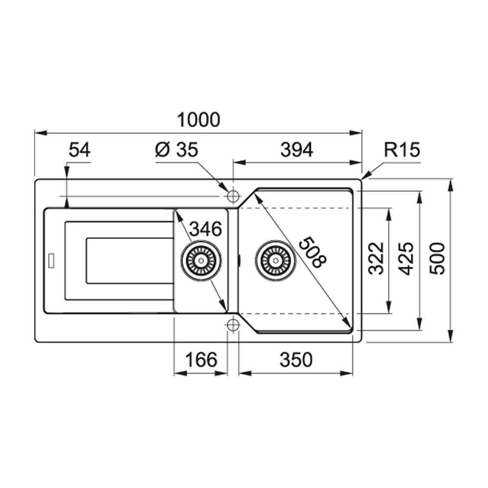 | Cuva (mm) | 350x425x220 / 163x322x139 |