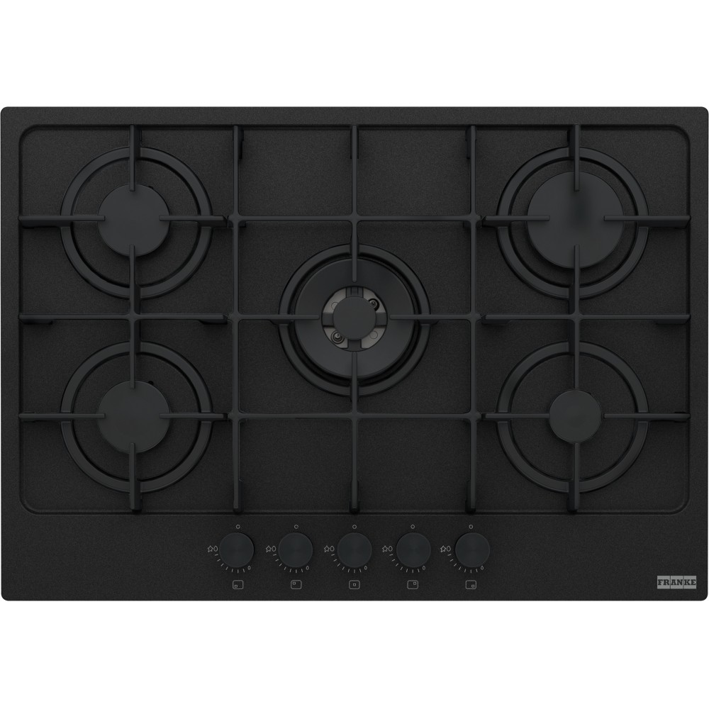 FRANKE Plita gaz Maris FHMA 755 4G DC MB C, Matte Black/ Negru Mat, 5 arzatoare, gratare fonta, 73 cm