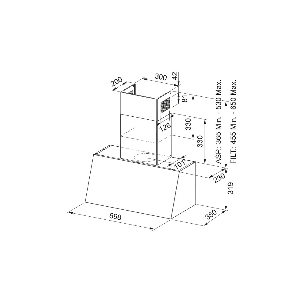 FRANKE Hota decorativa FCO 70 ON/G Nero/ negru, 600 mᶾ/h, comanda Push Pull, 70 cm