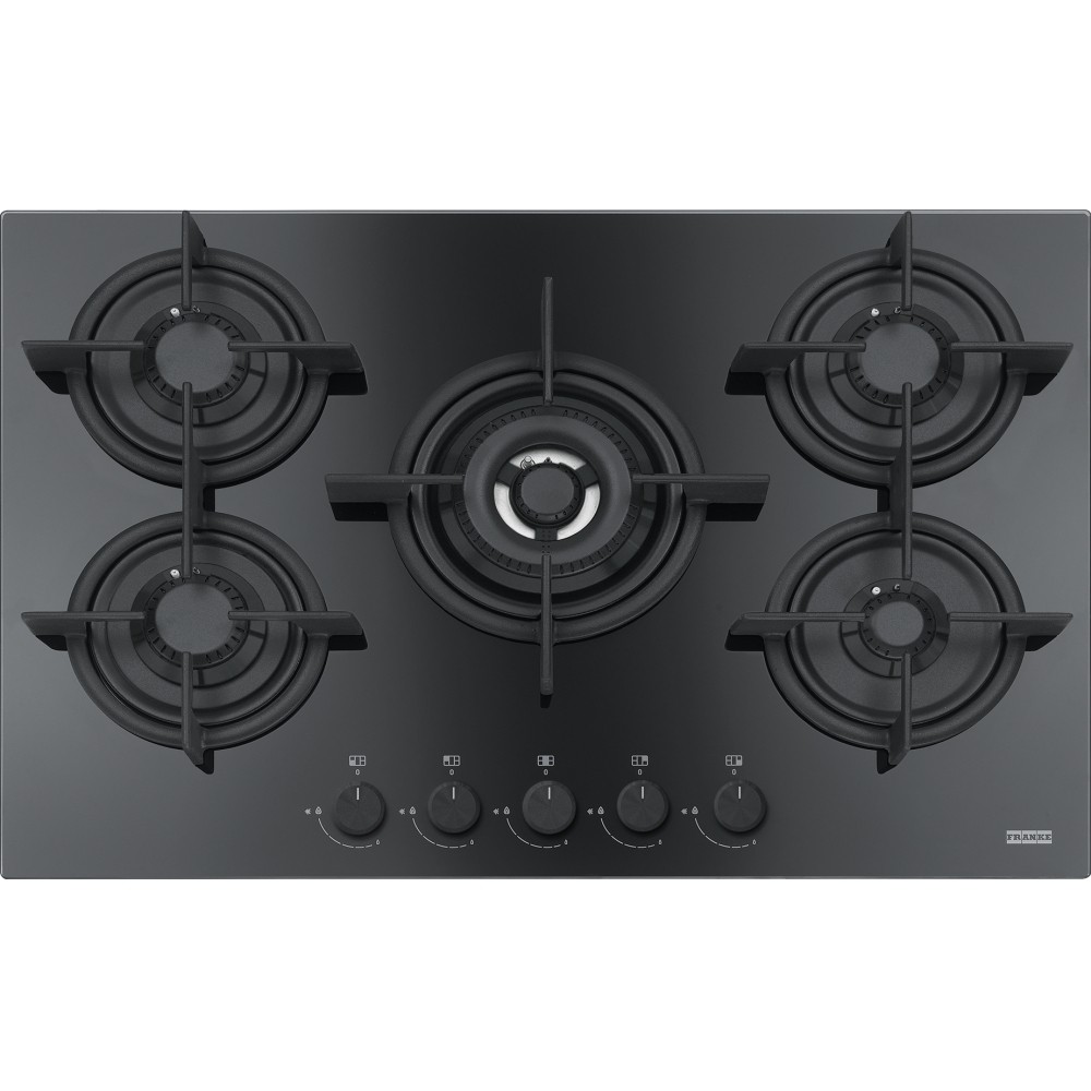 Plită pe gaz FHCR 755 4G TC HE BK C, Crystal, 75 cm, 5 arzătoare gaz eficiență înaltă, flacără verticală, grătare fontă, Negru